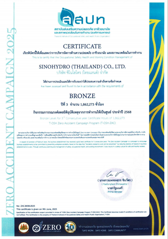 近日,公司正式取得由泰國(guó)勞工部組織頒發(fā)、泰國(guó)總理簽署的年度“零安全事故證書(shū)”,這是泰國(guó)勞工部為表彰在安全管理方面表現(xiàn)優(yōu)異的企業(yè)所頒發(fā)的最高榮譽(yù)之一。公司連續(xù)四年獲此殊榮,是對(duì)公司在安全管理領(lǐng)域卓越表現(xiàn)的高度認(rèn)可,也進(jìn)一步鞏固并樹(shù)立了公司作為泰國(guó)高質(zhì)量工程建設(shè)企業(yè)的正面形象。 近年來(lái),公司在泰國(guó)實(shí)現(xiàn)了曼谷南、童頌、帕楚、恰圖恰、北標(biāo)府、益梭通、烏隆他尼、烏汶、塔利、班武里等一系列項(xiàng)目?jī)?yōu)質(zhì)履約,為保障泰國(guó)電力運(yùn)行、促進(jìn)泰國(guó)經(jīng)濟(jì)社會(huì)發(fā)展作出了重要貢獻(xiàn),打造了中國(guó)品牌在泰國(guó)本地市場(chǎng)的優(yōu)質(zhì)履約形象。 公司持續(xù)深化安全管理屬地化建設(shè),組建了由泰國(guó)本土管理人員和一線員工構(gòu)成的全泰籍安全管理團(tuán)隊(duì),依托其對(duì)當(dāng)?shù)丨h(huán)境、文化和法規(guī)的理解,為公司安全決策提供了眾多具有實(shí)效的建議,有效推進(jìn)各項(xiàng)安全管理制度扎實(shí)落地。同時(shí),公司通過(guò)定期培訓(xùn)、嚴(yán)格檢查和定制化培訓(xùn),進(jìn)一步確保了安全管理制度的有效實(shí)施,切實(shí)提升了整體安全管理水平。 隨著項(xiàng)目履約的不斷推進(jìn),公司將繼續(xù)加大對(duì)安全管理的投入與重視,提升工程技術(shù)實(shí)力和現(xiàn)場(chǎng)安全標(biāo)準(zhǔn),以更高標(biāo)準(zhǔn)、更實(shí)舉措,力爭(zhēng)實(shí)現(xiàn)安全管理成效的新跨越,為高質(zhì)量發(fā)展提供有力支撐。 | |